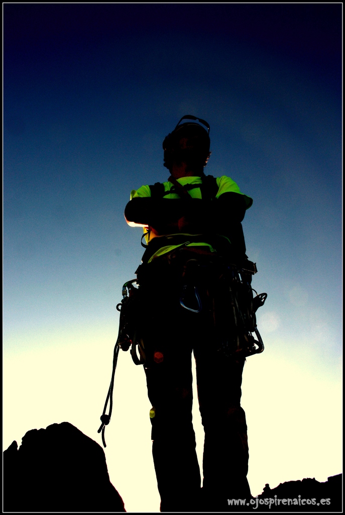 La mañana es solitaria y fría, mientras que un sarrio nos saluda desde la cumbre oriental de los Infiernos, que ya está ocupada…. Tranquilidad y cuidado hasta llegar al Collado de Pondiellos, y como ciempiés atacamos la arista hasta que sin darnos cuenta, estamos de nuevo frente a nuestra habitación Pirenaica de esta pasada noche… Nuevo abrazo, sonrisa, paz….todo!