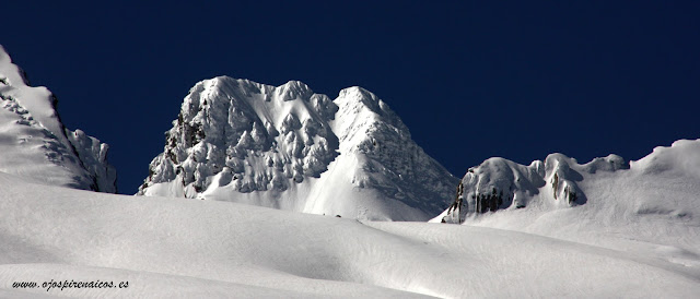 Hoy hemos vuelto a realizar una actividad de Raquetas de nieve por la zona fronteriza de la muga en el Somport. Hemos recorrido un paisaje blanco, decorado con «purgas» de nieve primaveral, un cielo azul y un Pirineo majestuoso, como es el de este Valle del Aragón.